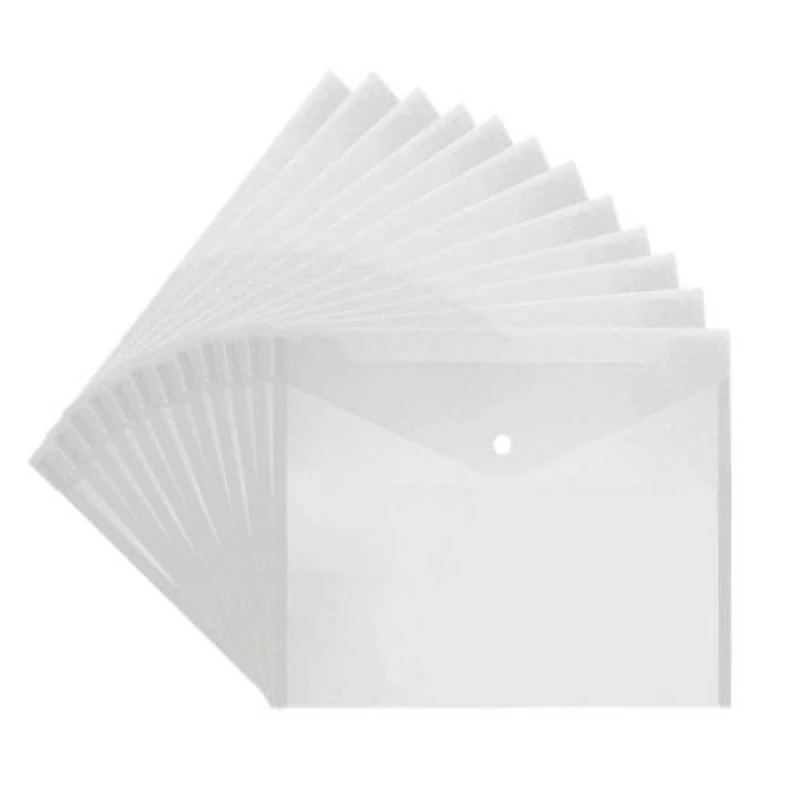 Chemise plastique transparente A4+. Fermeture par bouton pression. Plastique souple et résistant. Protection efficace contre poussière et humidité. Format A4+ pour documents volumineux. Idéale pour classement et transport sécurisé.