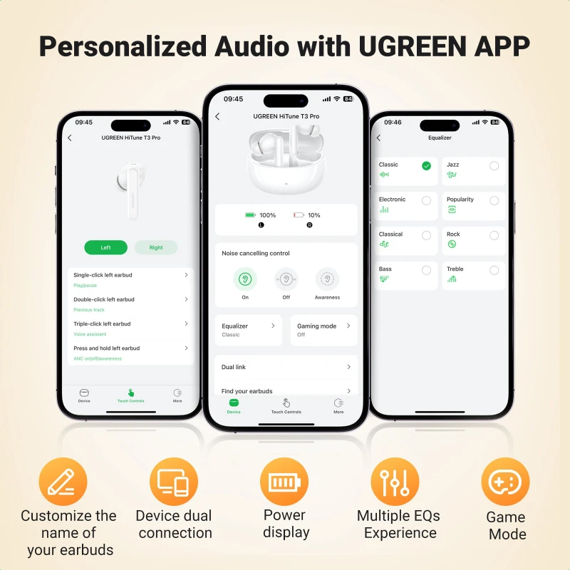 Écouteurs sans fil Ugreen HiTune T3 Pro ANC Wireless