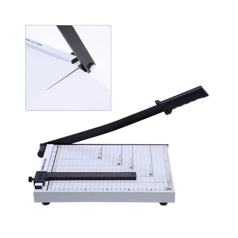 Ce massicot permet de réaliser des découpes précises sur différents types de papier, Son guide réglable assure des alignements parfaits pour tous vos documents, Compact et robuste, il s’intègre parfaitement dans un espace de travail professionnel ou scolaire.