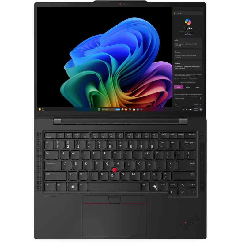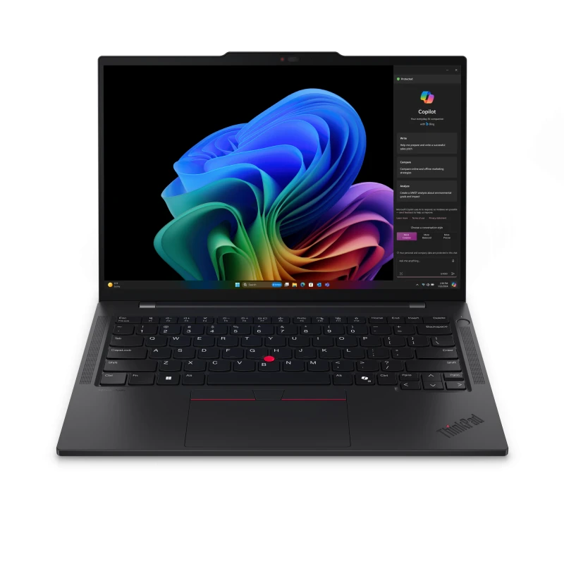 Snapdragon® X Elite X1E-78-100 jusqu’à 3.4GHz, 12 cœurs. 32Go LPDDR5x. SSD 1To NVMe PCIe 4.0 Opal 2.0. GPU intégré Qualcomm® Adreno. Clavier rétroéclairé AZERTY. Lenovo ThinkPad T14s 14″ WUXGA Ultra 7 SD-X1E. Écran IPS 1920×1200 400nits, anti-reflet, 100% sRGB. Windows 11 Pro. Poids 1.24 kg. Mobilité et autonomie longue durée.