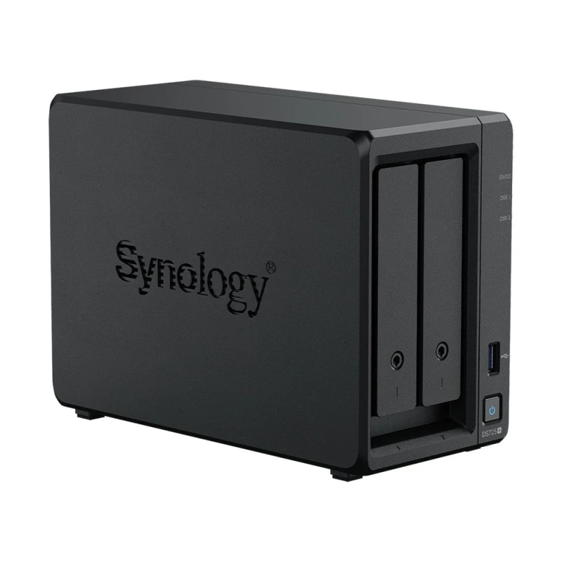 Synology DiskStation DS725+ NAS 2 baies évolutif. Processeur AMD Ryzen génération NAS. 2,5 GbE réseau supporté. Support Docker/VM Manager. Mémoire extensible. RAID avancé. Idéal pour stocker, sauvegarder, héberger services cloud personnels et PME..