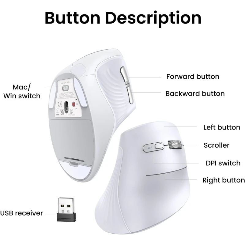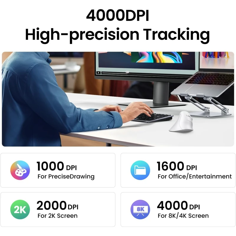La Souris Ugreen MU008 combine ergonomie verticale et technologie sans fil pour offrir une expérience de navigation confortable et naturelle, Conçue pour réduire la fatigue du poignet, elle est idéale pour les longues sessions de travail au bureau ou à la maison.