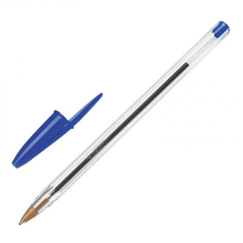 Stylo à bille BIC Cristal bleu. Pointe moyenne 1.0 mm. Écriture fluide et régulière. Encre bleue longue durée. Corps hexagonal transparent pour contrôle du niveau d’encre. Bouchon ventilé sécurisé. Usage scolaire, bureautique et professionnel.