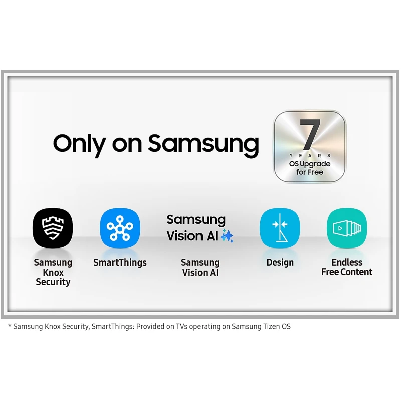 Son design ultra-fin aux bords presque invisibles s’intègre élégamment dans votre salon. Le mode Ambient transforme votre écran en œuvre d’art lorsqu’il n’est pas utilisé.